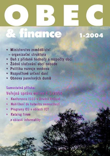- Pro finanční orgány obcí a krajů vydává Ministerstvo financí pravidelné informace k aktuálním otázkám financování. Tentokrát jsou v časopisu zařazeny informace o kulturním fondu obyvatel ústavů sociální péče, o závodním stravování, o odpisech a prominutí pohledávek příspěvkové organizace řízené krajem. Ve Zprávách je dále obsáhlý materiál o příspěvkových organizacích a o Metodice financování obcí pro rok 2004.