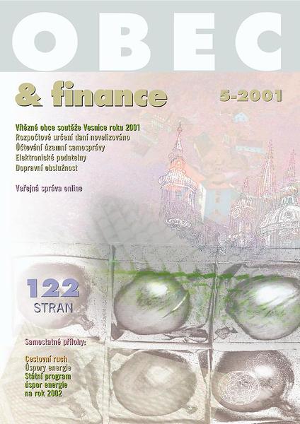 - Pro finanční orgány okresních úřadů, obcí a krajů č. 5/2001 především publikují metodický postup pro koordinaci činnosti krajů, okresů a obcí na úseku bezpečnosti provozu na pozemních komunikacích. V časopise je mimo jiné zveřejněno stanovisko k odejmutí příspěvku na výkon státní správy obci, postup při vracení nesprávně vyplacených prostředků na dávky státní sociální podpory a problematika dokladování užití části výtěžku z provozování loterií a jiných podobných her.